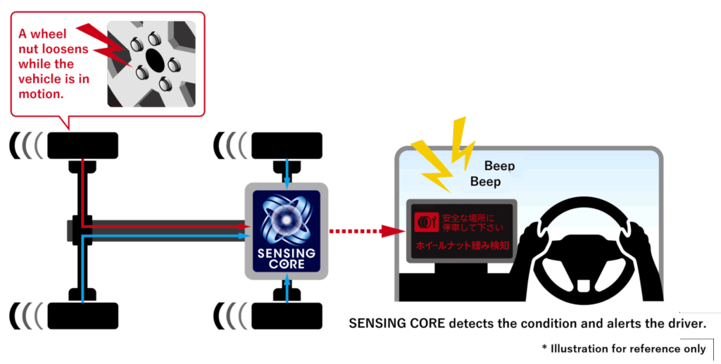 Isuzu Motors đã lựa chọn công nghệ này, được thiết kế để phát hiện tình trạng của lốp xe, xe cộ và mặt đường, cho mẫu xe tải hạng nặng Giga mới của mình, với hệ thống phát hiện dự đoán bánh xe bị rơi của Sensing Core trở thành trang bị tiêu chuẩn trên phiên bản cập nhật tháng 10 năm 2025 của xe.