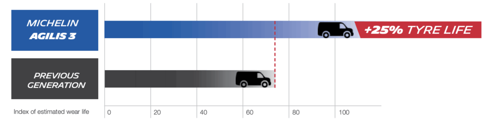 Michelin Agilis 3 mang lại mức độ an toàn cao trên đường ướt và hiệu suất năng lượng vượt trội (tiết kiệm nhiên liệu và giảm lượng khí thải CO2), đồng thời vẫn duy trì độ bền và chắc chắn mà bạn có thể mong đợi từ mọi loại lốp Michelin.